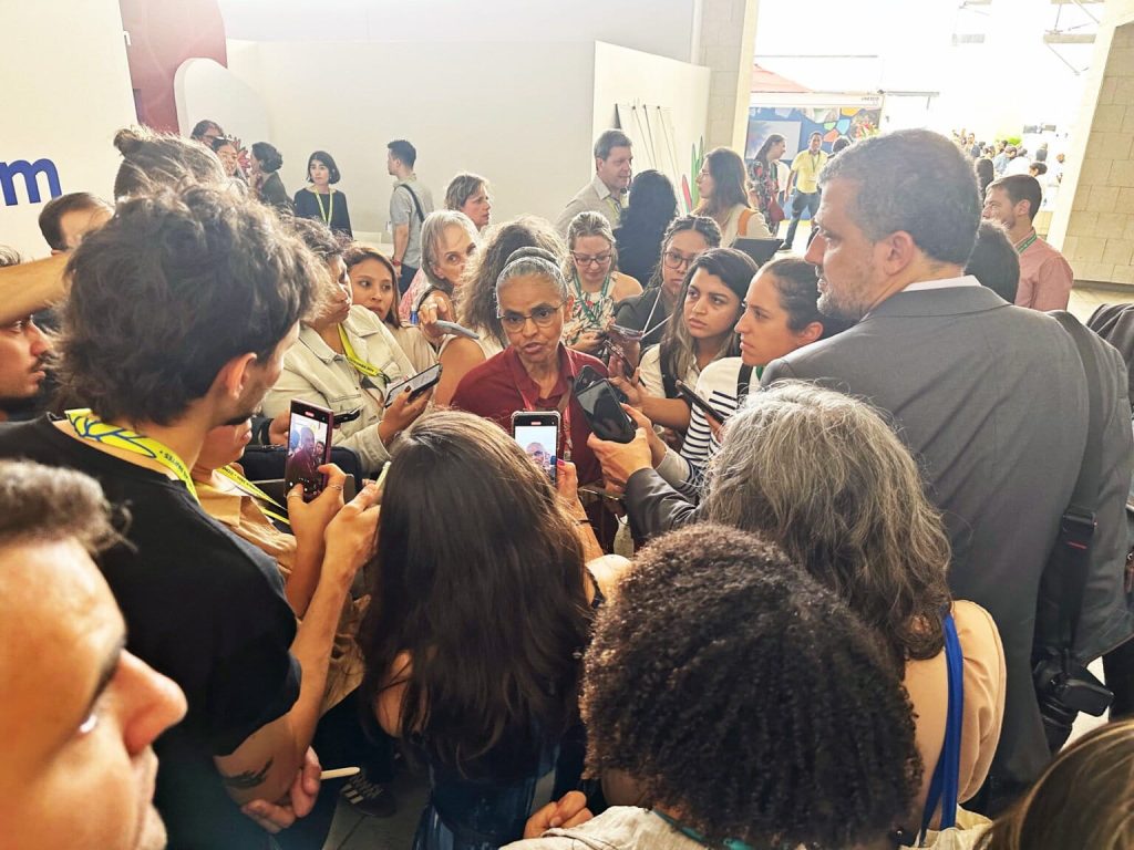 Brazil’s minister of the environment and climate change Marina Silva, shown here in an October 2024 meeting at COP16 in Colombia, has been instrumental in TFFF development and was in New York City during Climate Week to discuss it with other environmental ministers. Image by Justin Catanoso for Mongabay.
