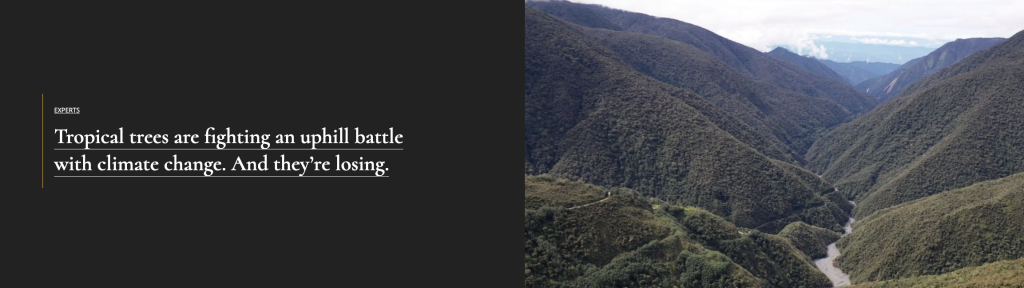 In a recent explainer from our colleagues at Wake Forest News, Sabin Center Fellow William Farfan-Rios talks us through how Andes Amazon forests struggle to adapt to the challenges of climate change. With four decades of monitoring data across a massive transect covering 3,500 meters in elevational range — from lowland Amazonian forests to the Andean tree line over two miles above it — Farfan-Rios and his fellow researchers at the Andes Biodiversity and Ecosystem Research Group (ABERG) have a wealth of insights into the ecosystem over time and space.
